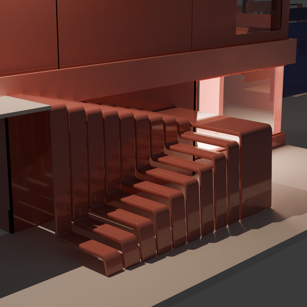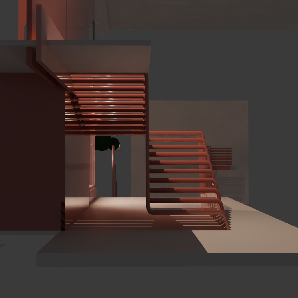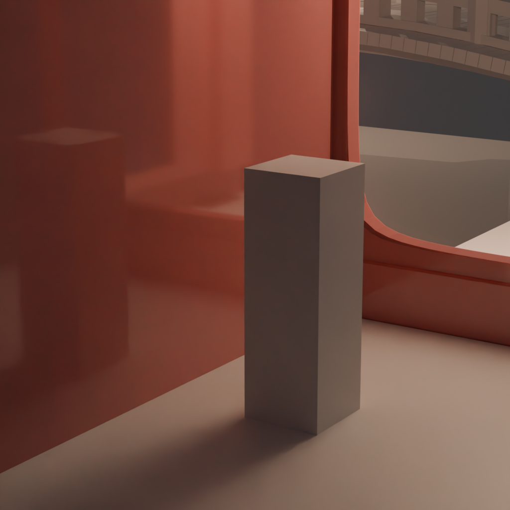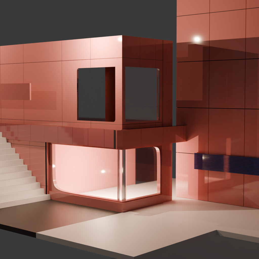 To emulate this lovely cladding I began working on the blender material that would be used for anything ceramic related. Ceramic cladding with porcelain can reflect light so an image can form, but not enough to the point it has good clarity. An example of ceramic porcelain being created in blender is shown below with the red wall.