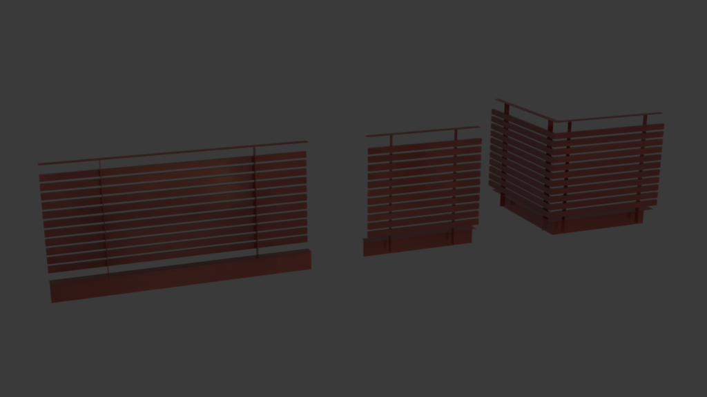 It is important to try to design around units especially when constructing ready made prefabs. This would involve designing prefabs around a grid based system that is shown in the image below. In the example I have designed an early version of railing prefabs around a 4×4 cube that can easily be taken apart and put back together like Lego pieces.
